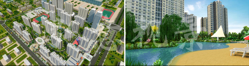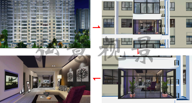 穿過窗子從室內樣板間 飛出 室外燈光廣場