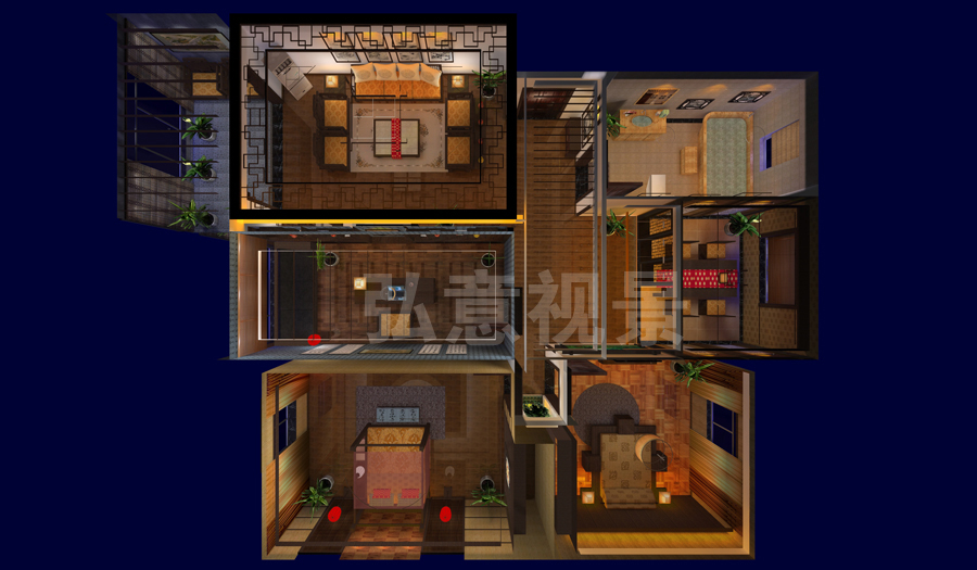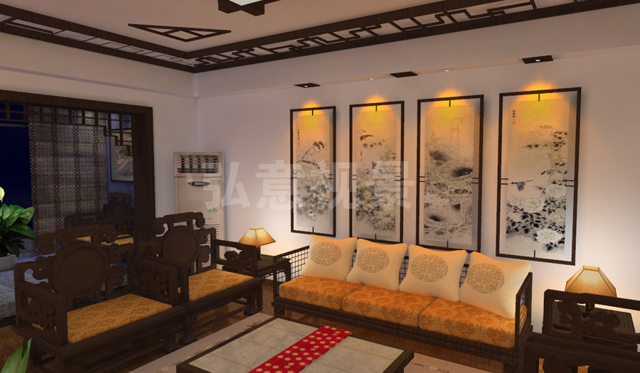 2、燈光以暖色為主,冷色為輔,使整個樣板間形成了溫馨氣氛;