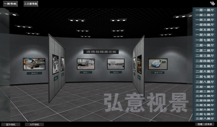 (2)用戶登錄成功后,進入3D場景的頁面,在該頁面上部添加鏈接欄區(qū)域,鏈接項目文字為“查詢統(tǒng)計”和“退出”。用戶點擊“退出”按鈕關(guān)閉場